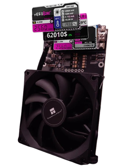 | Additional info | OpenSource miner fusion of NerdMiner and Bitaxe projects. |