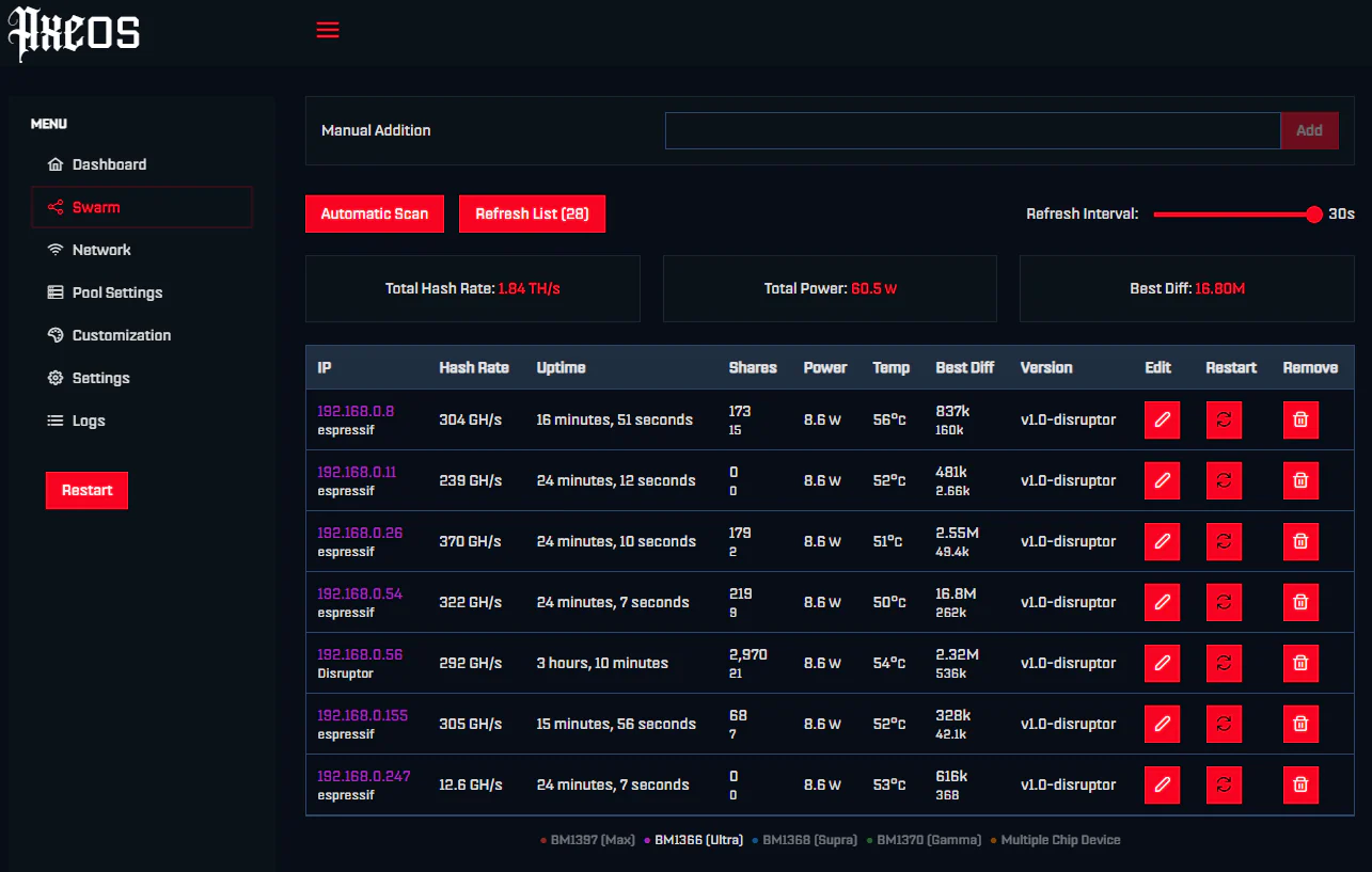 Uses BM 1366 Chip from Bitmain!