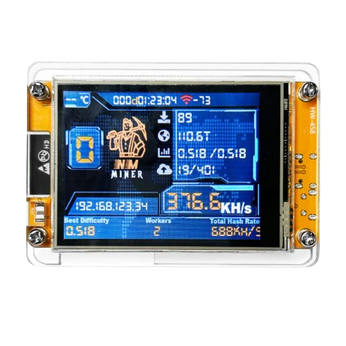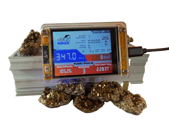 The Gold Nugget Lottery is a compact, WiFi-enabled Bitcoin solo miner designed for learning and fun. With a hashrate of 350 KH/s and ultra-low power consumption, it’s perfect for beginners who want hands-on experience in the world of crypto.